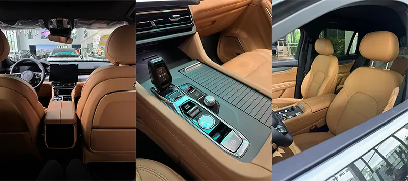 Spaciousness The nearly 3-meter wheelbase provides ample space for both six- and five-seat configurations, and the flexible adjustment of the second-row seats significantly enhances passenger convenience. The "Lingguang Armor" grille and exclusive color schemes are striking, while a variety of interior styles are available to suit different user preferences. The multi-screen smart cockpit, paired with a high-performance chip and 5G network, ensures smooth interaction and rich functionality. |