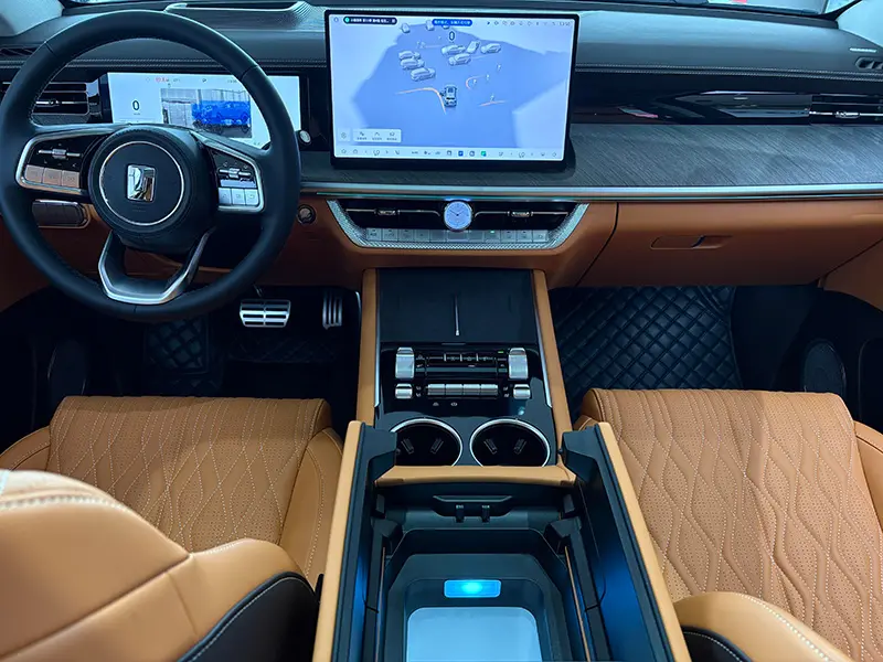 The new model emphasizes luxury and technology, featuring a mainstream combination of a 12.3-inch instrument cluster, a 15.6-inch central control screen, and a heads-up display. It also comes with the Coffee OS 3 intelligent operating system. The electronic shift lever creates a more organized space in front of the catwalk armrests, which feature dual 50W wireless charging panels for mobile phones and dual cup holders, while retaining mechanical buttons for blind operation. The new model also adds a far-infrared night vision system, which displays information on the instrument panel for enhanced nighttime driving safety.